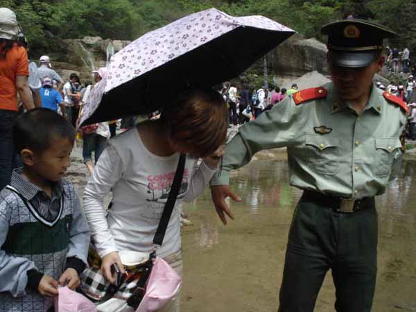 5、有點(diǎn)像領(lǐng)導(dǎo)到云臺山視察工作。左邊的是“攝影記者--侯記者”